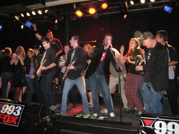 I got the invite for the show from a friend at work. Her husband is the lead singer of Sweetheart. I have to say I really enjoyed the show. This pic here is at the end of their set, when they asked people to come up on stage. They wouldn’t start the last song until the stage was full. They’re pretty funny, and they are natural performers. They aren’t your typical rock band playing trashy cover songs all night. They play all their own stuff…. and it’s good. Great music, great band. And the best part of it all is, they look like a band. They dress up, they match, and it looks sharp.