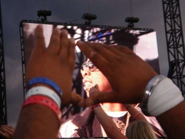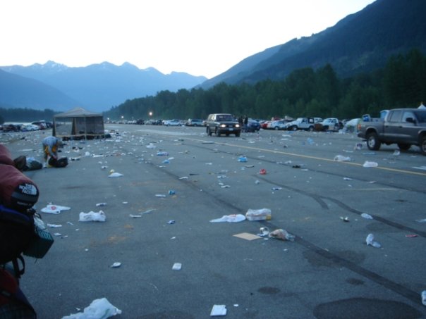 The next day, we woke up to the sound of Coldplay’s “Viva la Vida” being blasted from someone’s car stereo at around 5:00am. Normally this kind of thing would have annoyed me, but it was such a nice change from the crappy music being played the night before, that we all kind of enjoyed the wake-up call. So, anyway, we lined up around 6:00am(?) Friday morning and finally got loaded onto shuttles around 9:30am after being “security searched” for drugs and alcohol. Pffft.