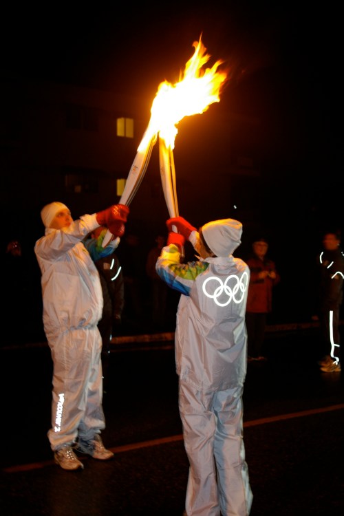 Another one of my favourite moments was just this year. My Mom had the opportunity to carry the Olympic Torch through our hometown of Powell River, BC for the Vancouver 2010 Winter Olympics. When I watch the video that Jordan made of that early morning on Nootka Street, I still tear up, and I think I will continue to do so, every time I watch it. I am so happy I was there to witness your glorious moment in person, along with the rest of the Behan mafia. We were so proud of you, Mom! You are world class.