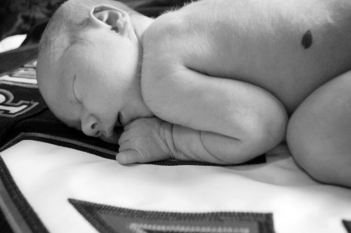 Okay, so maybe she did fall asleep for a few shots. I love this girl to death! I hope to take many more photos of her, and maybe do another shoot when she’s around 6 months. For practice, of course. ;) I was so delighted to take these shots for my friends and their first born, and I am just pleased as punch that they love them as much as I do. How cute is she, fast asleep on her Dad’s hockey jersey? Congratulations once again, you guys, on your little princess.